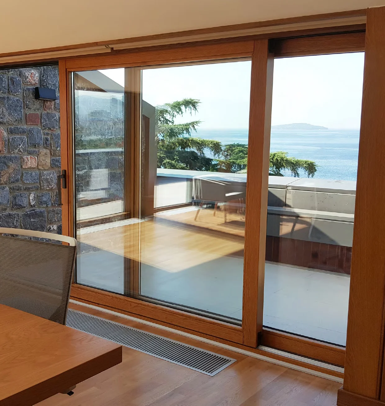 Advanced wood aluminum sliding door series with the parallel pull system. This design effortlessly merges sleek aesthetics with functionality, providing exceptional ease of use and high durability.