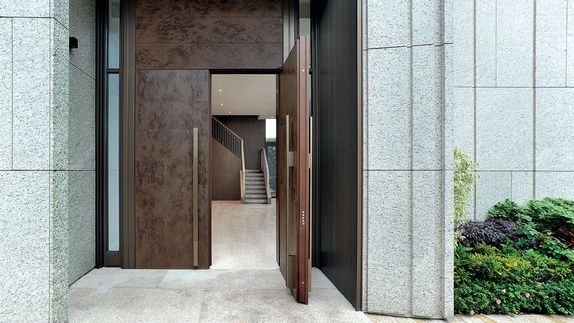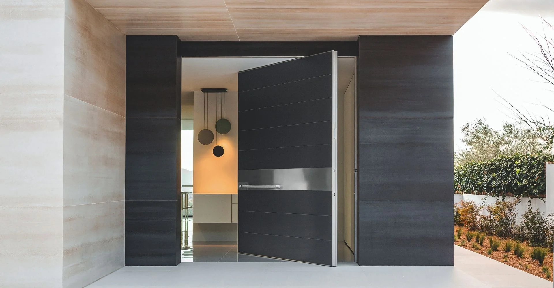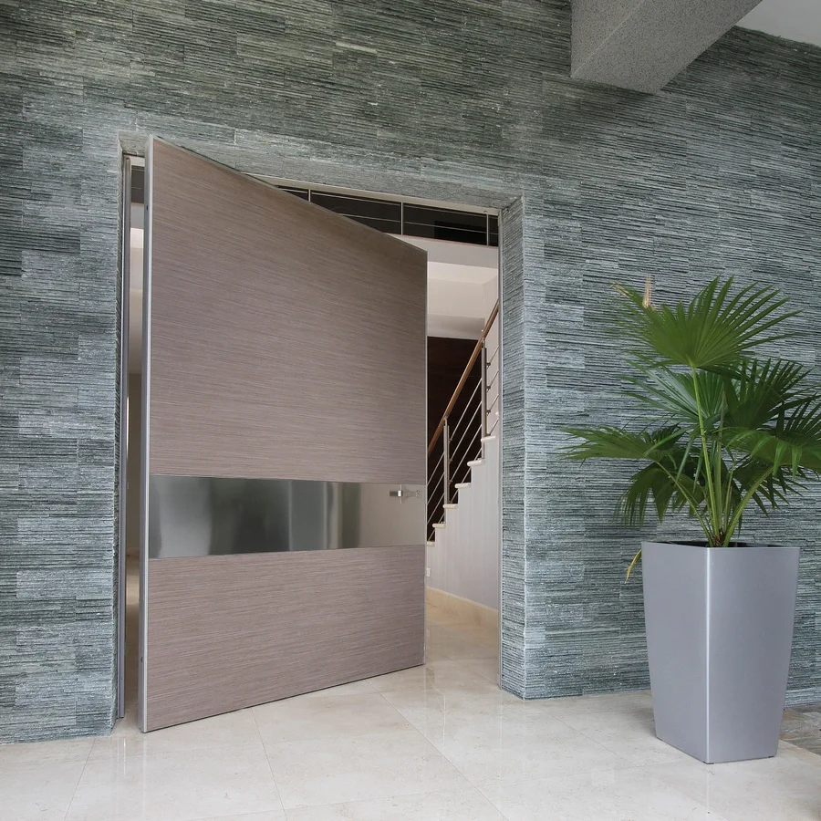 This pivot door represents a high-end engineering solution tailored to the demands of contemporary