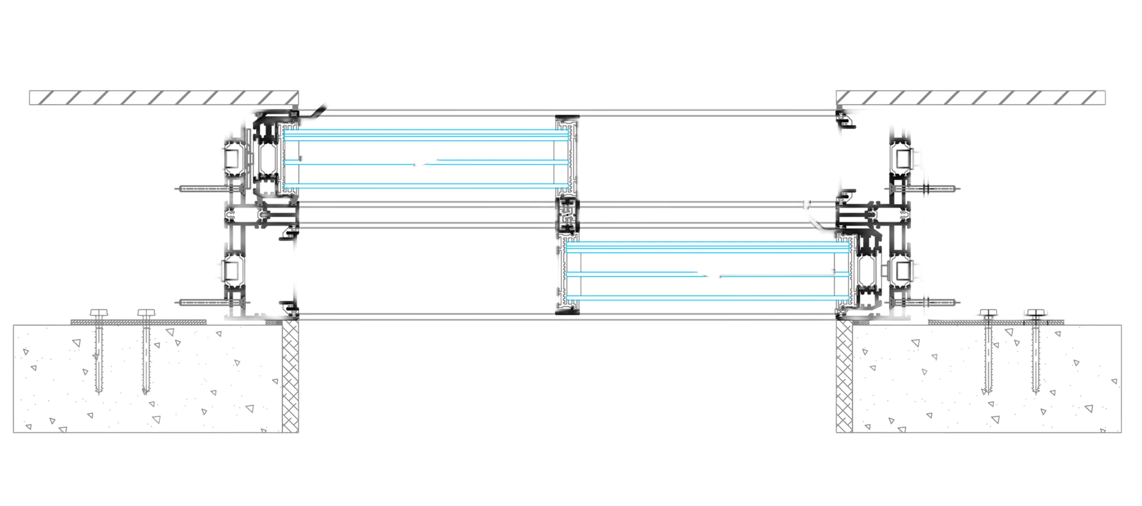 A fully hidden frame within the walls creates the most minimalist door possible without compromising possibilities—up to 6 rails and unlimited number of leaves.