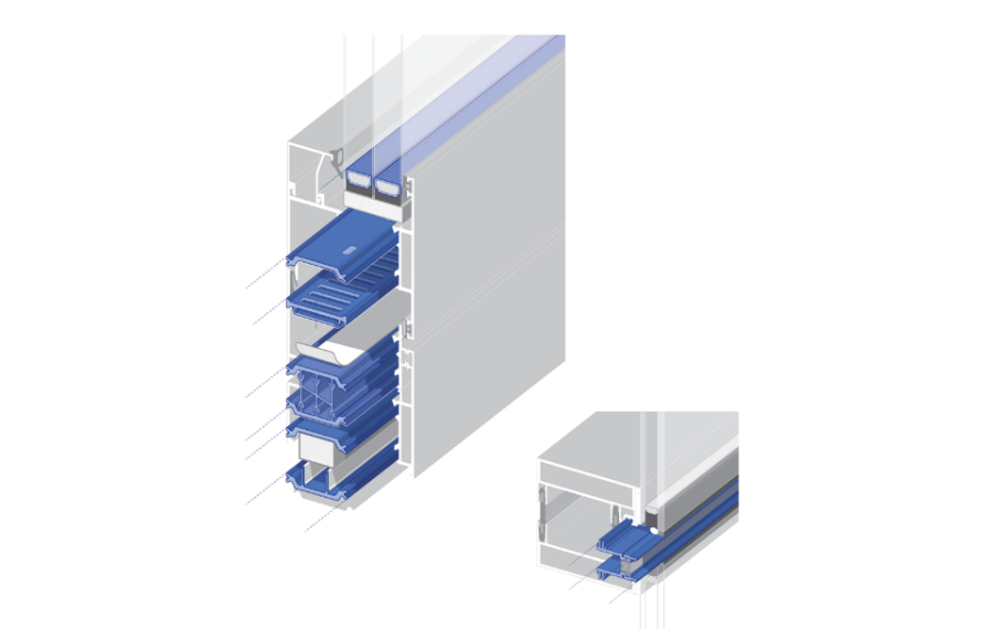 Offers fully concealed lateral openings or ultra-slim 21 mm central openings with the reversed interlock solution. A concealed handle is seamlessly integrated into the frame, hidden behind cladding for an unobstructed view.