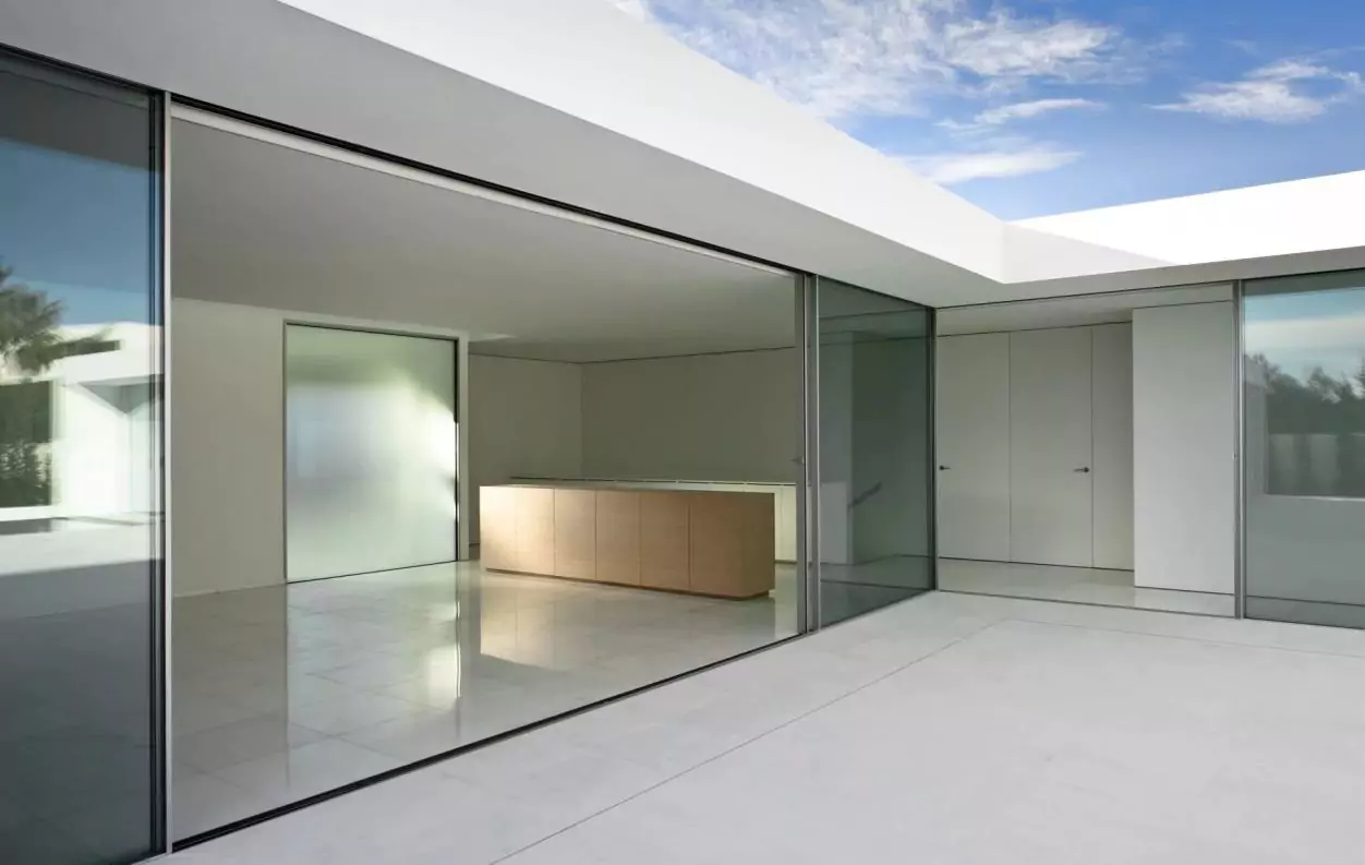 Engineered for longevity, our minimalist sliding door system with its durable stainless-steel rollers and integrated glass-guided track delivers exceptionally smooth sliding performance. These minimalist sliding doors are effortless to operate, even at weights of 1600 kg.